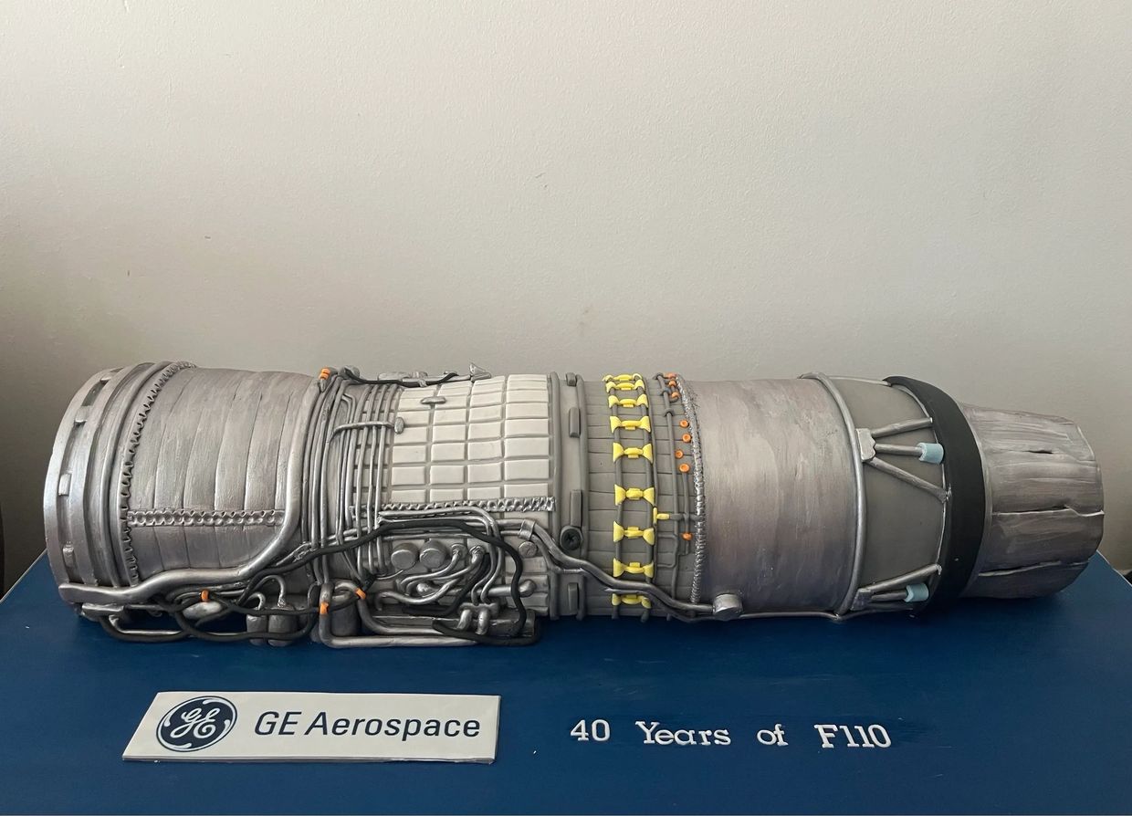 We are happy to create bespoke designs that encapsulate the products or ethics that your company promotes, or if you have something specific that your company produces, like the Jet Engine you see at the top of this page, we are only too happy to see if we can create it in cake form for you.